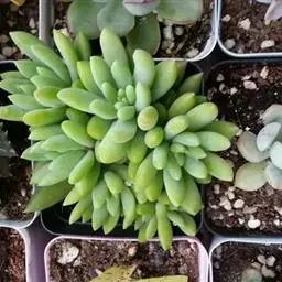 施肥景天类植物极耐瘠薄,一般不需施肥。若确实需要施肥养护的,可以在生长季施1至2次肥料,浓度一定要低,以有机氮肥为主。可以在早春季节植物新芽刚开始萌动时,在土壤表面撒施有机肥料,注意一定要量小。要根据肥料包装上的施用方法来进行,切不可妄自加大肥料用量。注意是在景天植物的周围撒有机肥料,切不可碰处植株顶端。 施肥时应注意:若使景天类植株茁壮、旺盛的生长,需要适度施肥。可施用全素肥料100ppm至150ppm,以保证生长迅速且开花良好。在施肥时可多频率的施用氮肥,定期浇清水以淋溶盆土中的盐分,防止无机盐浓度过高而对植株产生伤害。
