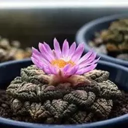 岩牡丹是仙人掌科、岩牡丹属多年生草本多浆植物。植株球形或呈扁平的莲座状,灰绿色,球体表面被白粉。…