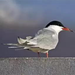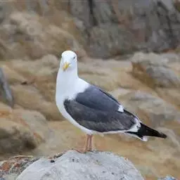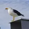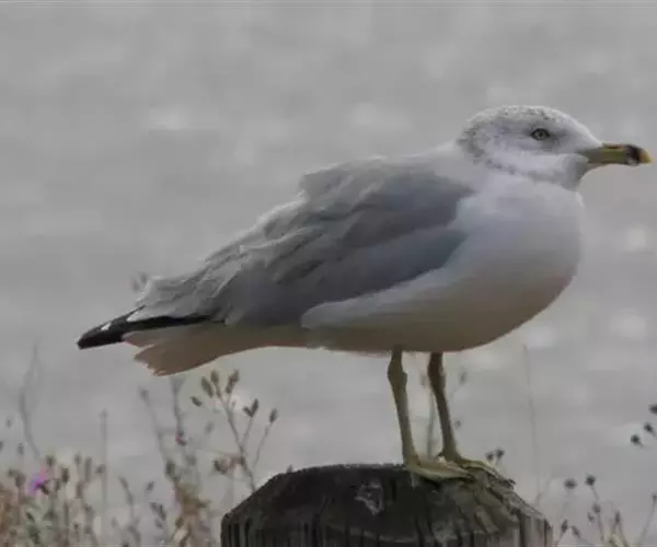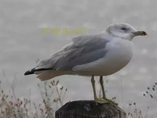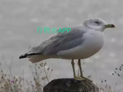 环嘴鸥(学名:Larus delawarensis):是一种常见的鸥, 因嘴巴上的黑环而容易辨认。是中等规模的海鸥。雄鸟比雌鸟大,体长46-54厘米,体重400-700克(平均550克);雌鸟43-50厘米长(平均46.9厘米),体重300-600克(平均470克)。成鸟翼展大约127厘米。头白色,头顶、后头沾灰,眼前缘及耳区具灰黑色斑,嘴黄色,喙先端有一段黑色,喙尖黄色。背部和肩膀都是蓝灰色,翼前缘白色,具有明显的白色斑点,腹部发白。脚和趾黄绿色。