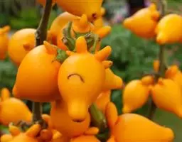 珊瑚豆(Solanum pseudocapsicum L. var. diflorum (Vell.) Bitter):直立分枝小灌木,高0.3-1.5米,小枝幼时被树枝状簇绒毛,后渐脱落。叶双生,大小不相等,椭圆状披针形,长2-5厘米或稍长,宽1-1.5厘米或稍宽,先端钝或短尖,基部楔形下延成短柄,叶面无毛,叶下面沿脉常有树枝状簇绒毛,边全缘或略作波状,中脉在下面凸出,侧脉每边4-7条,在下面明显;叶柄长约2-5毫米,幼时被树枝状簇绒毛,后逐渐脱落。花序短,腋生,通常1-3朵,单生或成蝎尾状花序,总花梗短几近于无,花梗长约5毫米,花小,直径约8-10毫米;萼绿色,5深裂,裂片卵状披针形,端钝,长约5毫米,花冠白色,筒部隐于萼内,长约1.5毫米,冠檐长约6.5-8.5毫米,5深裂,裂片卵圆形,长约4-6毫米,宽约4毫米,端尖或钝;花丝长约1毫米,花药长圆形,长约为花丝长度的2倍,顶孔略向内;子房近圆形,直径约1.5毫米,花柱长约4-6毫米,柱头截形。浆果单生,球状,珊瑚红色或桔黄色,直径1-2厘米;种子扁平,直径约3毫米。花期4-7月,果熟期8-12月。原产于巴西;在中国栽培,有时归化为野生种,见于河北、陕西、四川、云南、广西、广东、湖南、江西诸省。在四川、云南、广东、广西尤多见于田边、路旁、丛林中或水沟边,海拔1350-2800米地区常见,600米地区也有分布。果色鲜艳,可供观赏。
