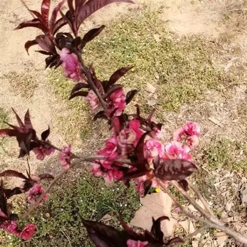 桃(Amygdalus persica)的一个变形,形态特征同桃树,特别之处在花色,通常一株树上有两个花色,有时同一朵花半红半白,非常奇特。花期3-4月。
