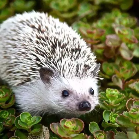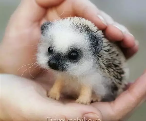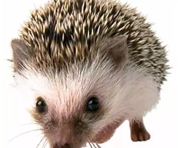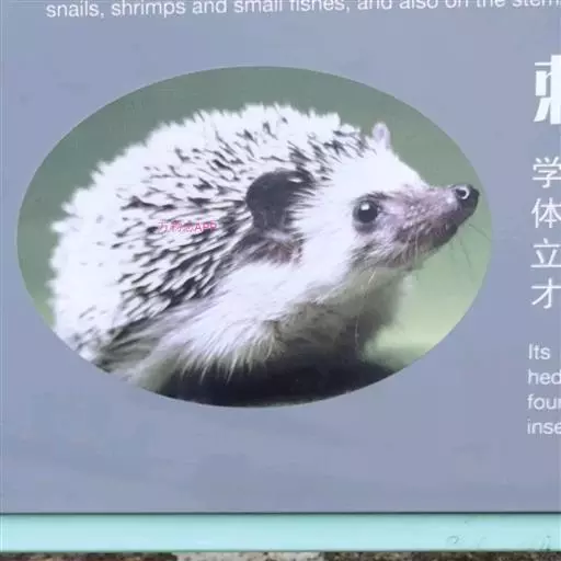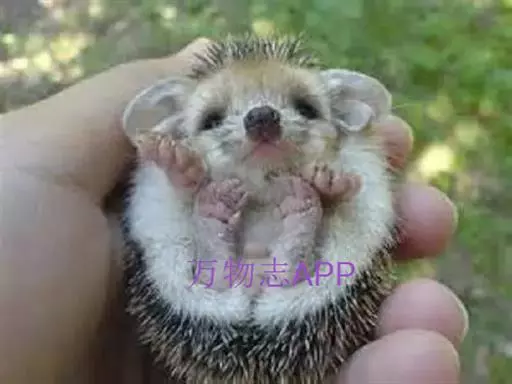 迷你刺猬 迷你刺猬处于宝宝期时只有人类手掌大小,酒杯或者汤匙能够轻松容纳它们。成年期的迷你刺猬,体重300多克,体长10-15厘米,腹部和脸是白色或奶油色的毛,白色的刺混杂著黑色或咖啡色;脸部也许会有较深的颜色像面具一般;脚上低一点的地方通常也会呈现较深的颜色;耳朵的高度比刺的长度短,被毛发环绕覆盖著。
