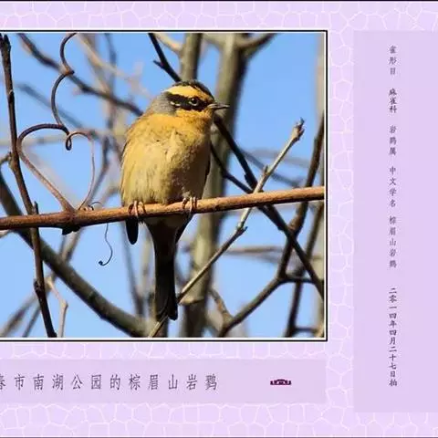 迁徙:棕眉山岩鹨在中国主要为冬候鸟。每年10月初开始迁来中国,10月下旬到11月末陆续到达中国越冬地,翌年3-4月开始迁往西伯利亚繁殖地。在中国长白山于5月15日还采得标本。说明在5月初还有未迁走的。