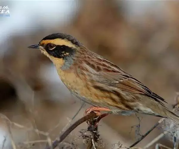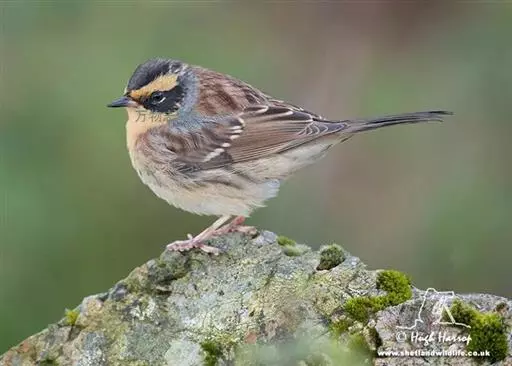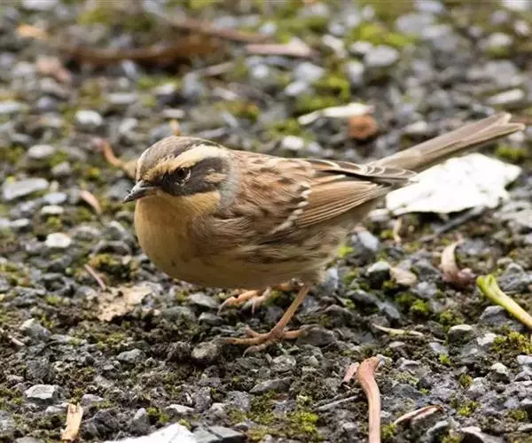 额、头顶、枕、头侧黑色,眉纹皮黄色或棕黄色、长且宽阔,从额基侧一直延伸到头后侧。后颈、背、肩栗褐色,各羽均具有黑褐色羽干纹或羽干纹不明显。有的背、肩呈淡褐或棕褐色具栗色羽干纹。腰和尾上覆羽灰褐或橄榄褐色,尾灰褐或黑褐色,翅上覆羽褐色或黑褐色。中覆羽和大覆羽尖端黄白色或棕色,在翅上形成两道明显的翅斑。飞羽褐色或黑褐色,外翈羽缘淡红褐色。颏、喉、上胸棕色或黄褐色,胸部羽基黑褐色微呈鳞状斑,胸侧和两胁黄褐色或棕色、具栗褐色纤细纵纹,腹中部和尾下覆羽皮黄色或皮白色沾棕。