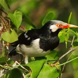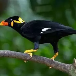 金冠树八哥为椋鸟科树八哥属的鸟类。体长约23厘米,闪辉黑色。特征为具翼斑及颏黄色,脸颊裸露皮肤粉黄色。…