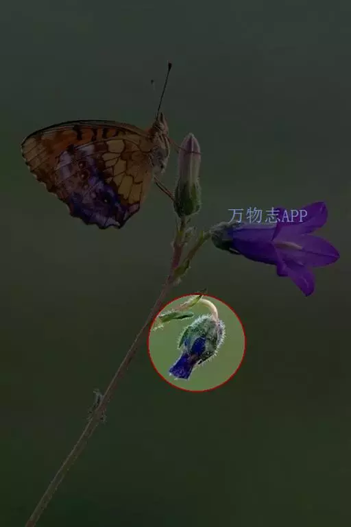 花序顶生及腋生,分枝,果期伸长,花序轴、苞片、花梗及花萼均被密糙伏毛;苞片线形至线状披针形;花梗近直立,长1-3毫米,果期伸长达1厘米;花萼长10-13毫米,5裂至近基部,裂片线状披针形,先端渐尖,果期长约1.8厘米;花冠蓝色,长达2厘米,筒部与萼等长或稍长,微弯曲,无毛,檐部直径约1.2厘米,裂片近圆形,宽约5毫米,喉部附属物画笔状,扁平,长约2毫米;雄蕊着生喉部之下,内藏,花药长约3毫米,花丝长约2.5毫米;花柱长1.1-1.3厘米,稍伸出喉部,柱头头状,微2裂。小坚果长约6毫米,有明显的网状皱褶及小疣点。