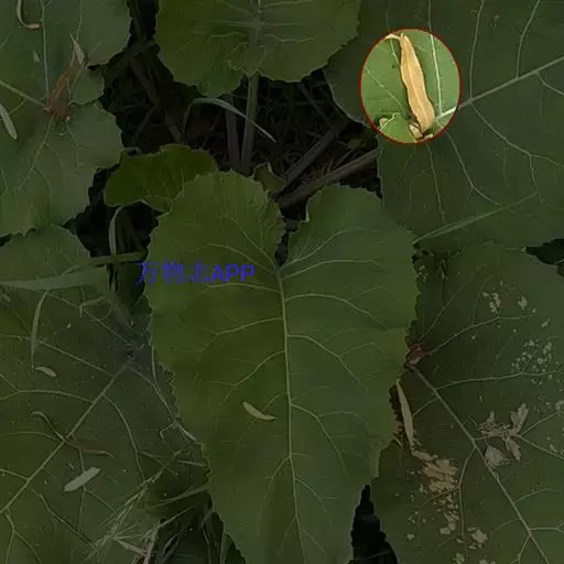 基生叶和下部茎叶花期枯萎脱落。全部叶有柄,柄长0.5-1厘米,两面异色,上面绿色,无毛或有极稀疏的短柔毛,下面白色或灰白色,被密厚的顺向贴伏的短柔毛。