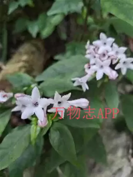 多年生草本,高10-25cm。全株常呈紫绿色。幼枝具棱,老枝圆柱形;根茎蔓延地下。叶对生;叶柄长1-3cm,纤细;托叶短小,早落;叶片狭卵形、长椭圆状斜卵形或卵形,长2.5-7.5cm,宽1.5-3.2,先端钝或稍钝尖,基部圆形或楔形,全缘,上面近无毛,下面脉上有毛,干后常变淡红紫色,侧脉7-10对。聚伞花序生于枝顶;花梗长2-5cm;苞片条形,长3-7mm萼筒短,裂片5,宿存;花冠筒状,淡红色,先端5裂;雄蕊5,着生于喉部以下;花盘肉质,环状;子房下位,2室,柱头2裂。蒴果倒三角形,长约4mm,上端宽约1cm。种子小,椭圆形。花期4-7月,冬天亦可开花。