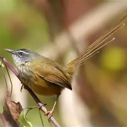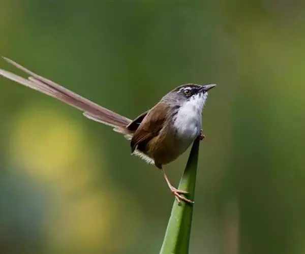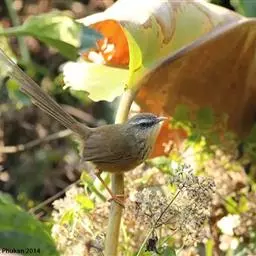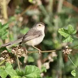 灰胸鹪莺(学名:Prinia hodgsonii):体长12厘米,是一种体型略小的灰褐色鹪莺。具略长的凸形尾。繁殖期成鸟:上体偏灰,飞羽的棕色边缘形成翼上的褐色镶嵌型斑纹;下体白,具明显的灰色胸带。非繁殖期的成鸟及幼鸟难与非繁殖期的暗冕鹪莺相区分,但浅色的眉纹较短;嘴较小而色深,尾端白色而非皮黄色。尾比褐头鹪莺短很多。