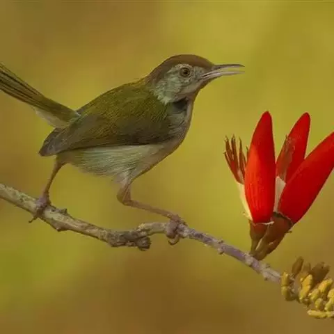 普通缝叶莺,是雀形目鹅科莺亚科缝叶莺属一种。体长10-14厘米,体重7-10克,雄鸟前额棕红,…