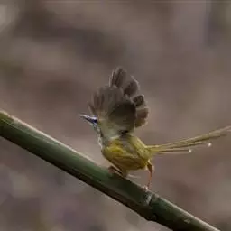 黑喉缝叶莺:体长11.5厘米,是一种小型的顶冠棕色、腹部白色的莺。尾甚长而常上翘,臀黄色,…