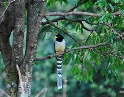 盘尾树鹊,是雀形目鸦科的珍稀鸟类,是一种中等体型的近黑色树鹊。尾甚长而端部展开;通体体羽闪亮深灰色,…
