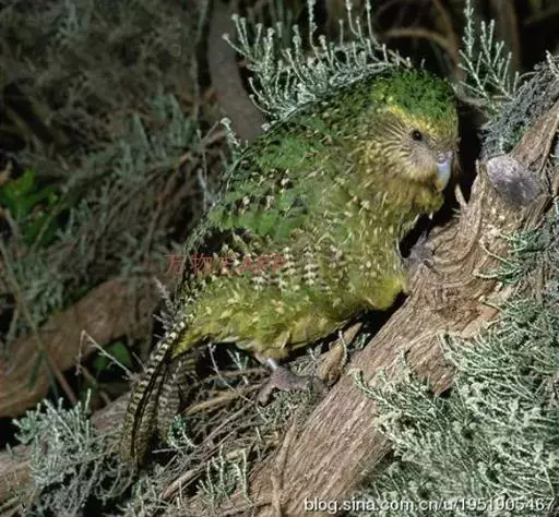 鸮鹦鹉(学名:Strigops habroptila),新西兰人叫“kakapo”,这是当地的毛利语,kaka即“鹦鹉”,po的意思是“夜”。中文翻译成鸮鹦鹉颇为神似,因为鸮鹦鹉的脸盘的确酷似夜间活动的猫头鹰。是一种夜行性鹦鹉,全身披上黄绿色的细点,是新西兰的特有种。它面上有鸮形目独有的面盘羽毛排列,有独特的感受器-羽须,大而灰的喙,短腿大脚,翅膀及相对地短的尾巴。它的不同习性使它成为一种相当独特的品种-它是世上唯一一种不会飞行的鹦鹉,体型冠绝同类。