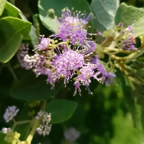 聚伞花序宽8-11厘米,7-9次分歧;花序梗长3-5厘米;花柄及萼筒密生星状毛,萼齿不明显或截头状;花冠紫色,长约2毫米,无毛,雄蕊长过花冠约2倍,药室纵裂;子房有星状毛。