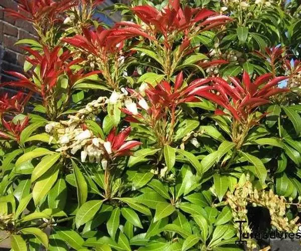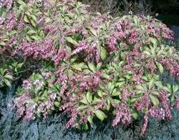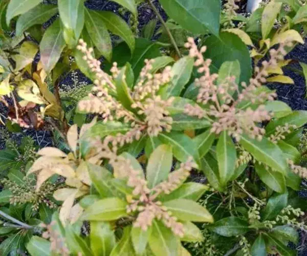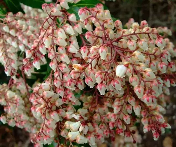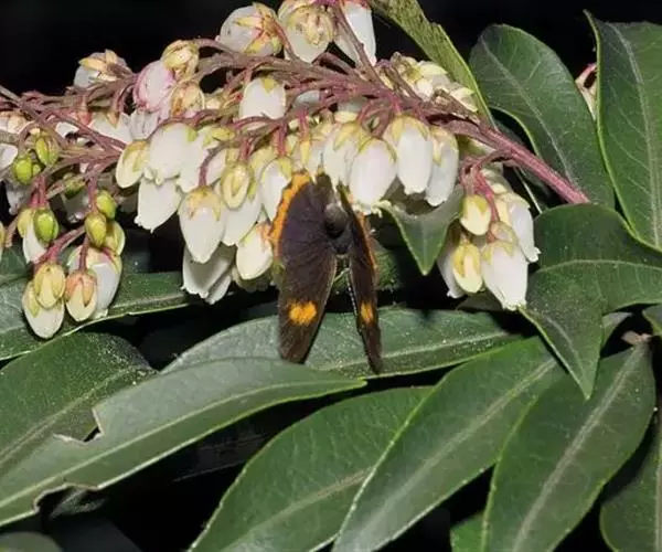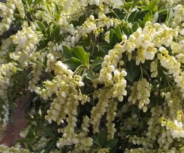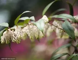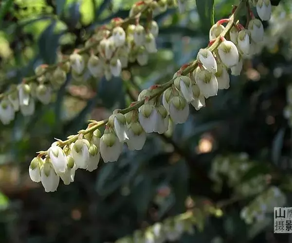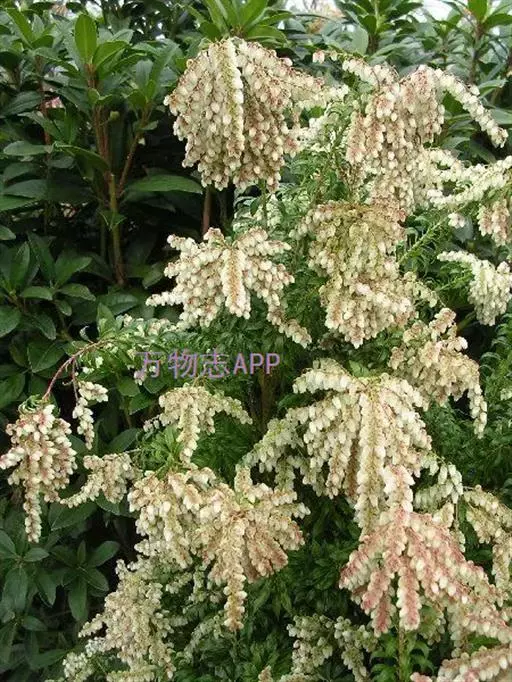 马醉木2-4月开花,总状花序,花序上有白色壶状小花数朵,排列别致有趣。马醉木树姿优美,因叶色随着叶的新老程度不同而变化,所以同一时期会同时拥有红、粉红、嫩黄、绿色等叶片,异彩纷呈,有着较高的观赏价值和园林应用价值。马醉木可应用于花篱和色块配置、块状种植和边缘灌木,色彩艳丽,萌发力强,它是园林绿化向高品位方向发展更新树种的理想选择之一,一年四季均可观赏,也可作为盆栽推广,是一种布置庭园的好材料。