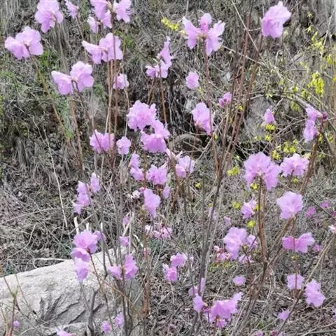 灰背杜鹃:常绿小灌木,高0.25-1米。茎直立,幼枝细长,呈扫帚状,黄棕色,密被棕黄褐色鳞片。叶芽…