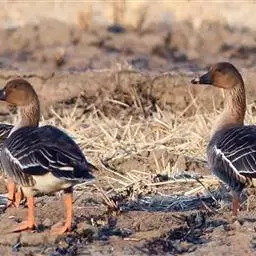 豆雁,雁形目鸭科。成鸟头、颈、背灰褐色,带淡黄色羽缘;尾上覆羽白色,尾羽黑褐色带白端,…