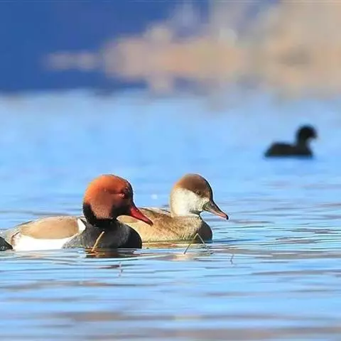青头潜鸭,是雁形目鸭科潜鸭属的迁徙性鸟类。雄性头部和颈部为黑色,有绿色光泽,上体为黑褐色,…
