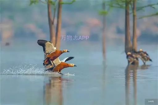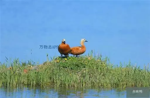 赤麻鸭 栖息于江河、湖泊、河口、水塘及其附近的草原、荒地、沼泽、沙滩、农田和平原疏林等各类生境中,尤喜平原上的湖泊地带。主要在内陆淡水生活,有时也见于海边沙滩和咸水湖区及远离水域的开阔草原上。