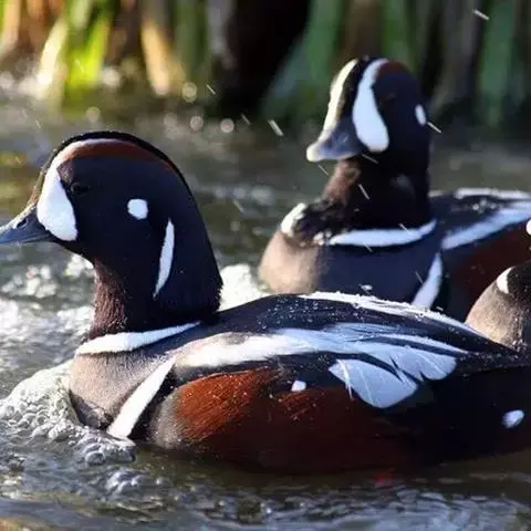 鹊鸭是雁形目鸭科鹊鸭属鸟类。鹊鸭雄鸟头颈部近黑色泛绿色光泽,…