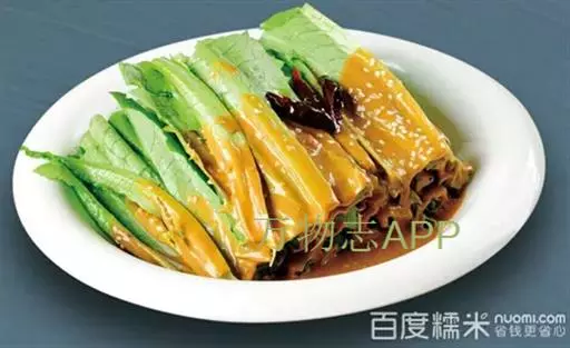 制作好的凉粉刷成条状,用蒜汁及当地独特的芝麻酱调拌,炎炎夏日,来一碗,爽滑无比,真是解暑美味。