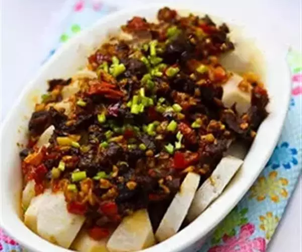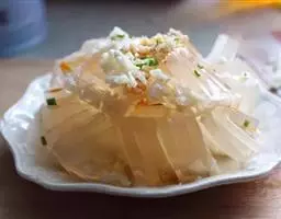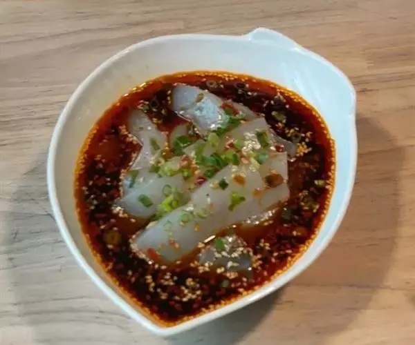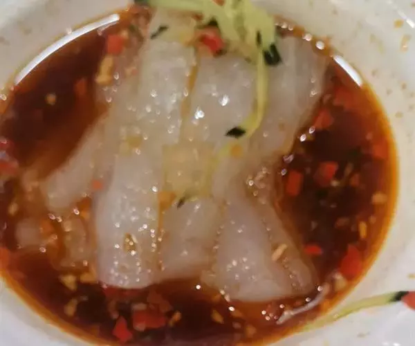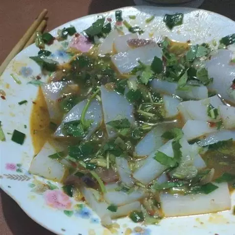 5、取食:拌以酱油、醋、蒜泥、味精、油辣子等不同佐料,即成各式清凉、爽滑的凉粉。若拌以豆豉酱,则可制成四川凉粉之正宗——川北凉粉。