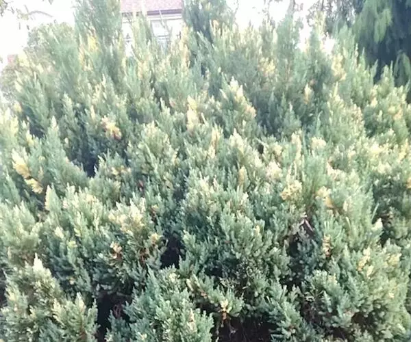在6月至10月高温湿热的环境下,洒金柏易出现枯叶病。另外,在土壤含氮量高,或有传染性病害如中锈菌寄生的情况下,也会出现枯叶的现象。以连云港为例,由于沿海地区气候较为湿热,3月中旬出现病害是有可能的。