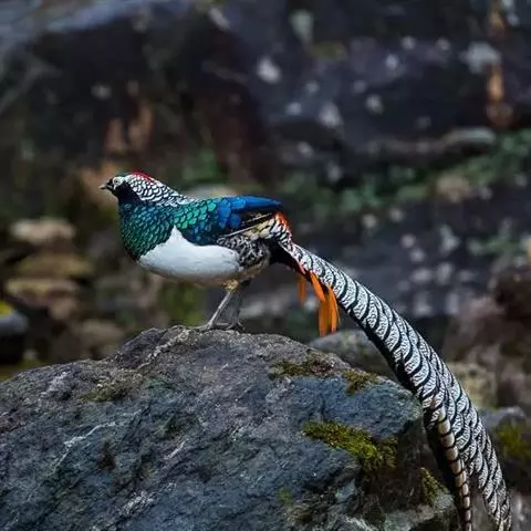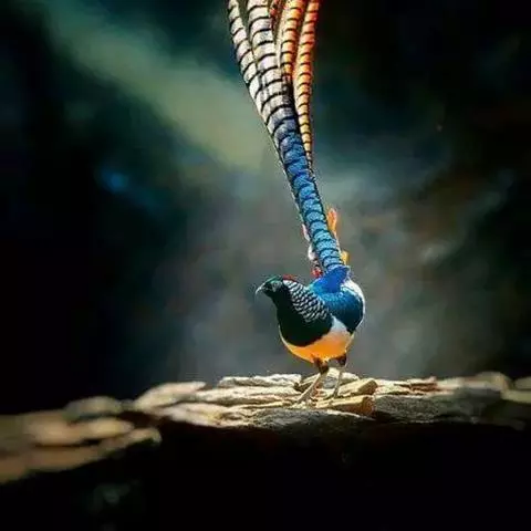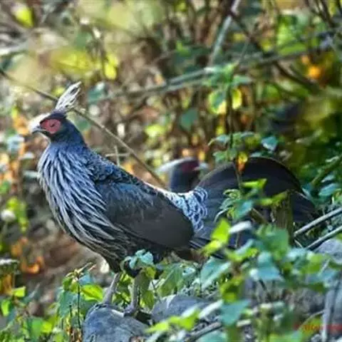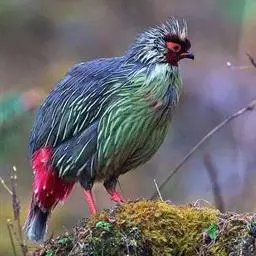 黑长尾雉大型鸡类,体长53~88厘米。雄较雌大。雄鸟通体紫蓝色,脸鲜红色,翅上有一条显著的白色翅斑…