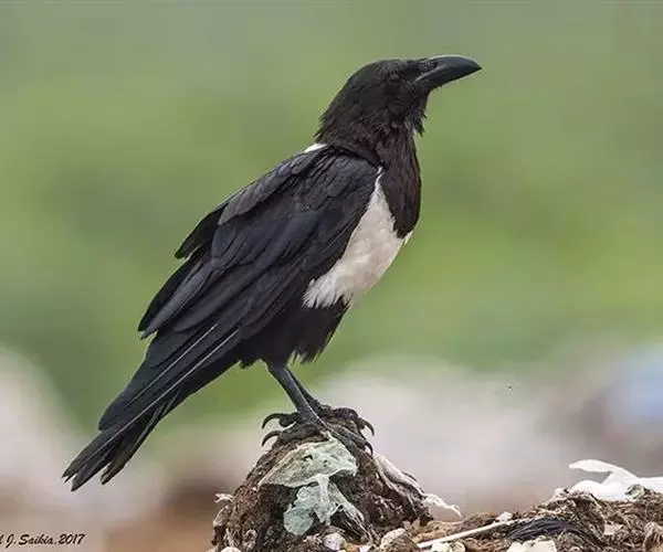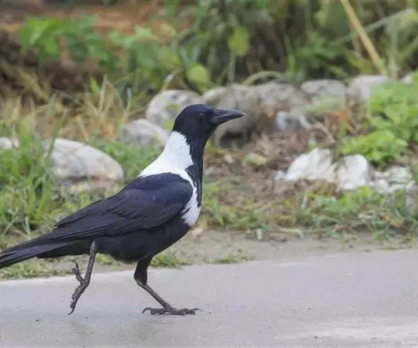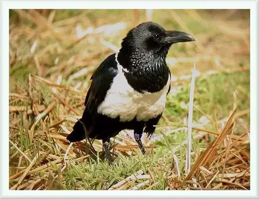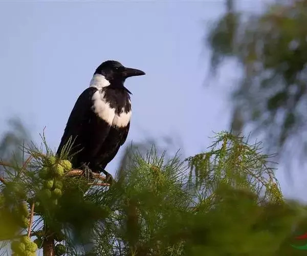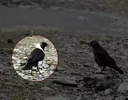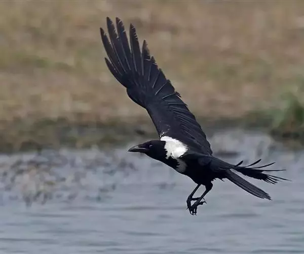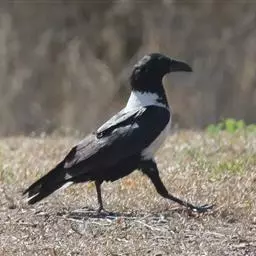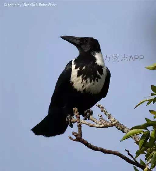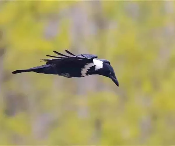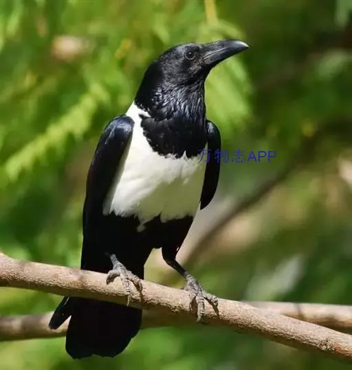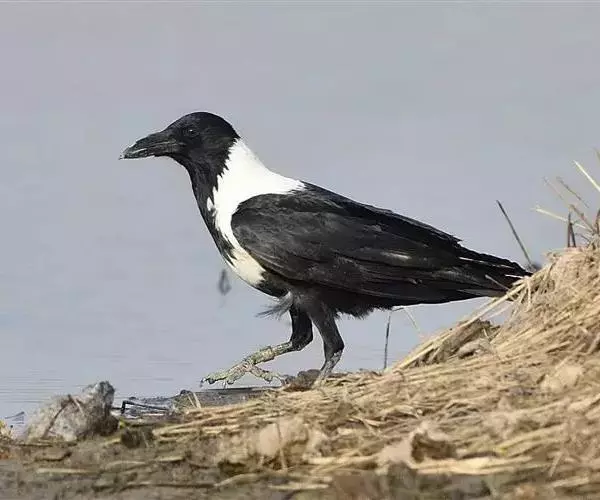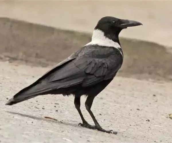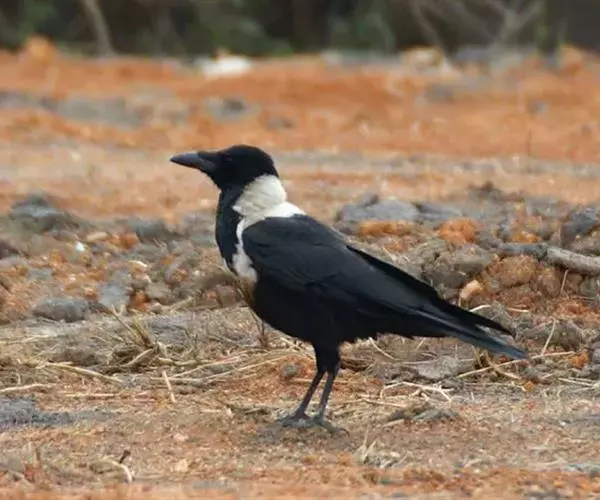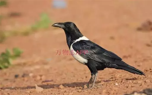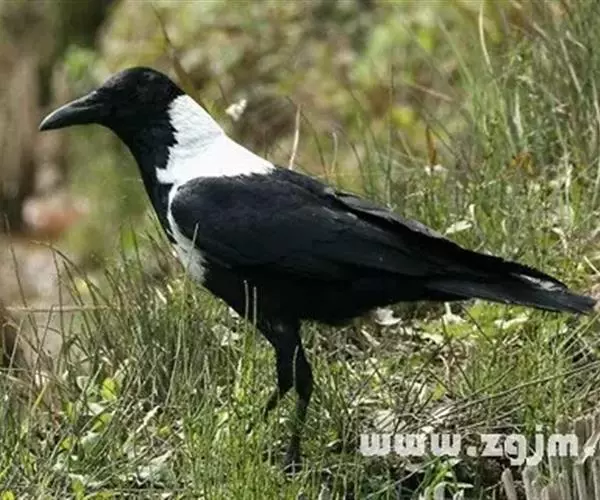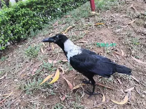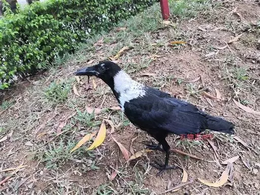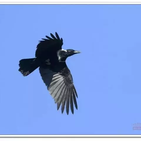 白颈鸦(学名:Corvus pectoralis):除颈背和胸有一白圈外,其余体羽全黑。 成鸟的后头、翕的上部延伸至上胸白色,这些白羽基部灰色,羽轴亦灰色;其他体羽黑色;喉羽披针状;头和喉闪淡紫蓝光泽;初级飞羽外翈闪淡绿光泽。雌雄同色。幼鸟羽色与成鸟相似,但白色部分不著,而显土黄或浅褐色;黑色部分暗纯,且无紫绿色闪光。 虹膜褐色;嘴、跗蹠、趾、爪均黑色。