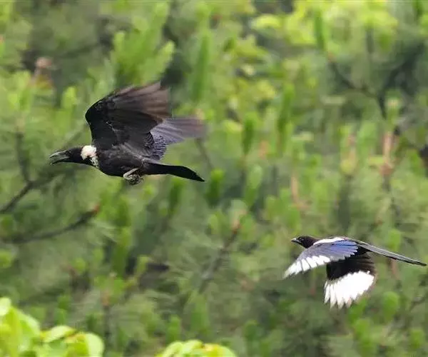 白颈鸦常见于平原、丘陵和低山,也见于海拔2500米左右的山地。多栖于开阔的农田、河滩和河湾等处,在地上,特别在新耕和施肥地上,缓步觅食。