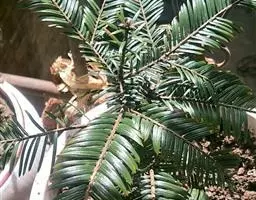 泽米苏铁科苏铁属。植物丛生,茎撑球状,叶为中型羽状复叶,簇生于茎顶,小叶为卵状椭圆形。雄雌异株,雄…