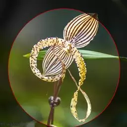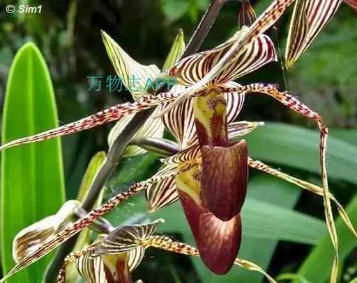 飘带兜兰 生于海拔1000-1100米的林中树干上。
