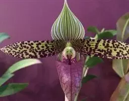 虎斑兜兰兰科,兜兰属地生或半附生植物。叶基生;数枚至多枚,叶片带形、革质。花葶从叶丛中长出,花苞片…