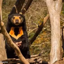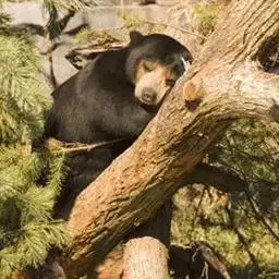 马来熊,是食肉目熊科马来熊属哺乳动物。体胖颈短,眼睛和耳朵小;头部短圆;全身乌黑光滑;鼻唇周为棕黄色,…