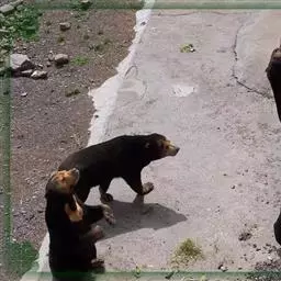 懒熊(学名:Melursus ursinus):属于熊科、懒熊属的动物。体型中等,雄性比雌性重30%至40%,雄性体重80-140千克,雌性体重55-95千克,成年懒熊的肩宽约60-90厘米,尾长15-18厘米,是熊科中最长的。懒熊全身覆盖长而蓬松的毛发,毛色浅的如赤褐色,深的可至黑色。胸部有个特别的浅的“V”字形或“ Y”形斑块,脸部毛发相对较少,毛色偏灰。吻部稍白,鼻子呈黑色。口鼻很长,能灵活移动,它们可以随意控制鼻孔闭合。懒熊的上颚只有4颗门齿,而不像很多其他种类的动物那样上下各有六颗,这样中间形成空隙就有助于它们吸食白蚁。