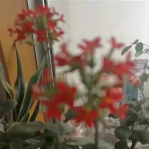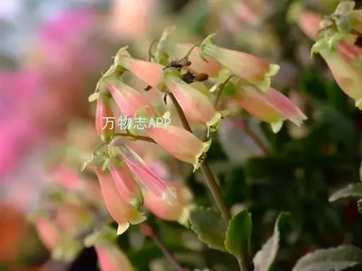 宫灯长寿花(大宫灯)是景天科伽蓝菜属,也叫红提灯,蔓生吊钟海棠,为多年生草本植物,茎木质化,多分枝,新生分枝柔软常下垂,叶对生,长卵形,稍具肉质,花淡红色,管状,先端4瓣稍分开,其外形酷似小提灯故此得名宫灯长寿花。