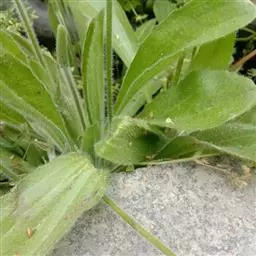 叶质较厚,下部叶密集,大头羽状分裂,长5-10厘米,宽2.5-6.5厘米,顶生裂片大,宽卵状三角形,顶端钝或近圆形,具不规则的齿,侧生裂片通常1对,长圆形或长圆状披针形,顶端钝或尖,具波状齿,上面深绿色,下面常变紫色,两面被短卷毛;中部茎叶疏生,较小,卵状披针形或长圆状披针形,无柄,基部箭状抱茎,顶端急尖,全缘或有不规则细齿;上部叶少数,线形。