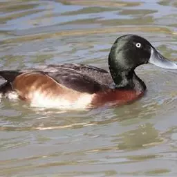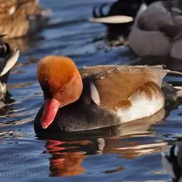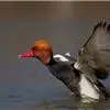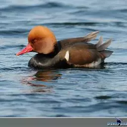 赤嘴潜鸭俗称大红头,是大型鸭类,个体比绿头鸭小,体长45-55厘米,体重1千克左右。雄鸟头浓栗色,…