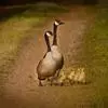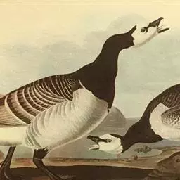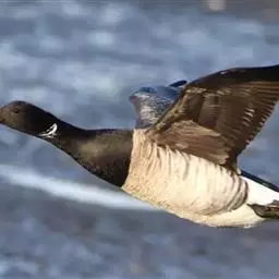 黑雁是雁形目鸭科黑雁属鸟类,又称黑鹅。头、颈、胸、嘴及脚黑褐色;虹膜褐色;背及两翼灰褐色;尾下覆羽白色;胸侧及胁部多近白色纹;颈部两侧各具一个特征性白色横纹,在颈前后断开,未能联成颈环。幼鸟颈部无白斑,而翅上多白色横纹。黑雁繁殖于北美洲、西伯利亚极地的苔原冻土带,越冬于南方沿海的草地及河口。在中国安徽也能见其身影。主要栖息在海湾、海港及河口等地,在冬季里大多出现在有耐碱植物生长的湖泊和水库周围,也出现在周围地势低洼的咸水湖和沿海地区,偶尔还出现在农田地里。性活跃,喜集群,常成群活动和栖息。主要以植物性食物为食。繁殖期在6-8月,雌鸟孵卵,雄鸟通常在距巢100米以内范围内守候警诫。雌鸟孵卵时常将头和颈朝地面平伸出去以降低高度。孵化期为22-28天。黑雁被列入中国林业局2000年8月1日发布的《国家保护的有益的或者有重要经济、科学研究价值的陆生野生动物名