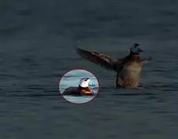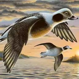 长尾鸭体长约58厘米,是中等体型的灰、黑及白色鸭,中央尾羽特长,雄鸟胸部的黑色斑块为特征。…