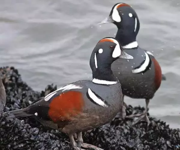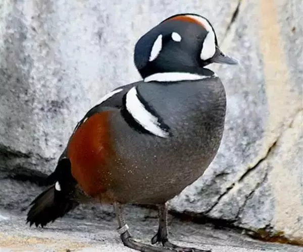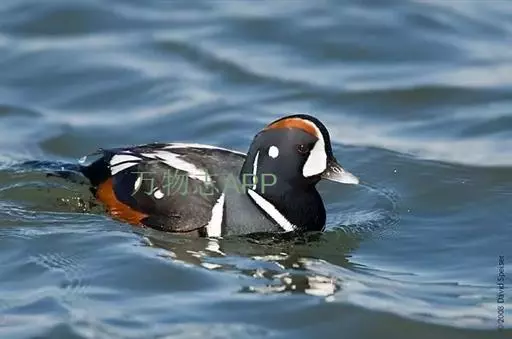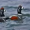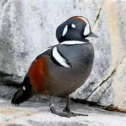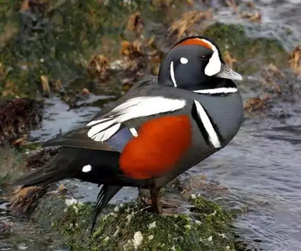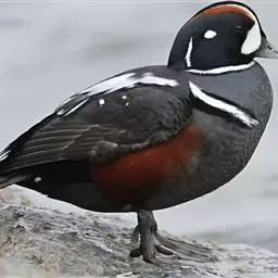丑鸭(学名:Histrionicus histrionicus)体长33-54厘米,翼展56-66厘米,体重500-726克。具有非常丰富多彩的羽毛,酷似意大利哑剧中多姿多彩的角色——丑角,故名之。栖息和生活于溪流旁,岩石和灌丛间的深凹处,树洞中。常成对或成小群活动,非繁殖季节也集成大群。飞行迅速,但通常不高飞。主要以动物性食物为食。觅食活动多在白天。常在水流湍急的江河、山区溪流和多岩礁的海岸附近觅食。分布于冰岛、格陵兰、阿拉斯加海岸、西伯利亚东部、贝加尔湖西部山脉、阿纳德尔盆地、堪察加半岛、萨哈林岛、千岛群岛、朝鲜半岛、日本(中部),以及中国的东北(中部)、辽宁(新金、旅顺)和山东等地。
