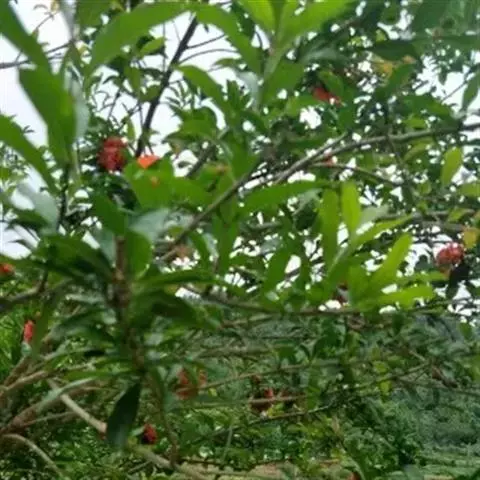 6、修剪。石榴花的混合芽着生在健壮的短枝顶部或近顶部,对于这些枝,在休眠期修剪时应予保留,不进行短截也不疏去。长枝在修剪时可保留基部2~3芽重短截,萌芽后条件好当年可以长出结果母枝。