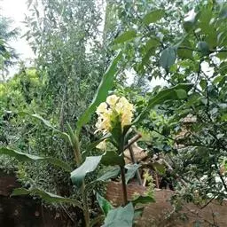 黄姜花:姜科,姜花属多年生草本草本芳香花卉,秋冬季开花,穗状花序,长圆形;苞片长椭圆形,覆瓦状排列,…