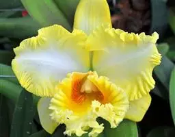 建兰四大铭品之一。夏皇叶形为长鱼肚型,叶尾稍钝,叶面波浪纹稍重!叶片厚实!花为黄白色,稍偏黄,两捧…