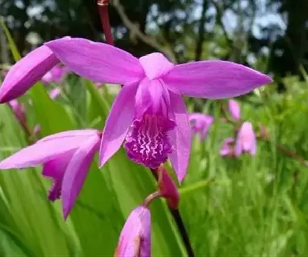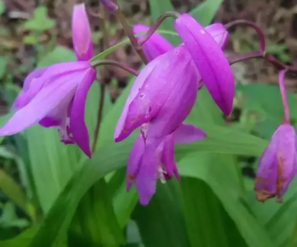 白及,中药名。为兰科植物白及Bletilla striata( Thunb.) Reichb.f.的干燥块茎。每年9~10月当茎叶枯萎时采挖,除去须根,洗净,置沸水中煮或蒸至无白心,晒至半干,除去外皮,晒干。