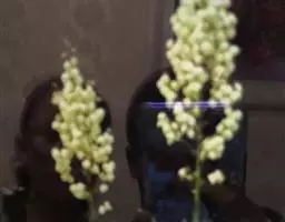 花葶高45-100厘米,较粗壮,常稍弯曲;总状花序长15-30厘米,排成顶生的总状花序或伞房花序,具多数、密集的花;苞片条状狭披针形,绿色,迅速枯萎,但不脱落;花被片6片,矩圆形,离生,宿存,长约8毫米,白色,中央有绿脊;雄蕊稍短于花被片,花丝下半部极扩大。 [1-2]