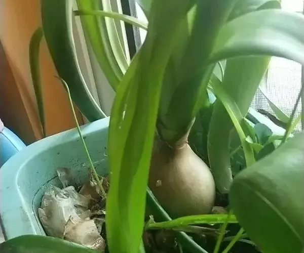 鳞茎卵球形,表面光滑,绿色,具膜质鳞茎皮,直径可达10厘米。 [1-2]