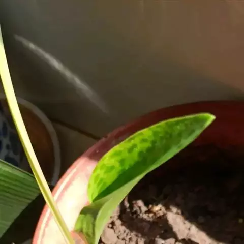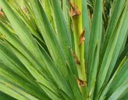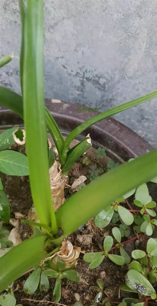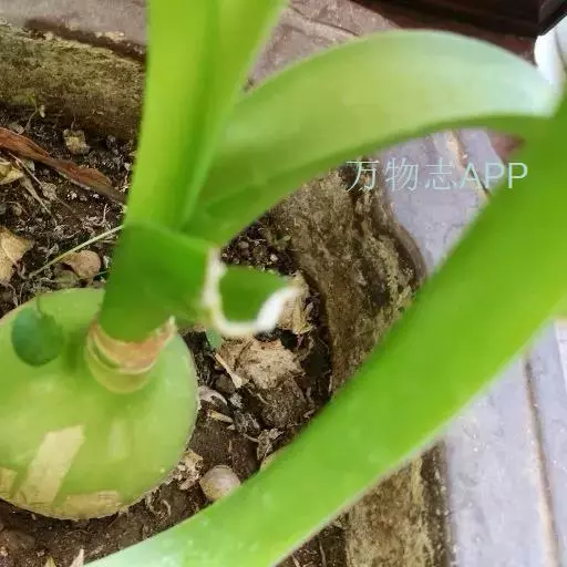 叶基生,5-6枚,带状或长条状披针形,有时稍带肉质,端部尾状长尖,长30-60厘米,宽2.5-5厘米,先端尾状并常扭转,常绿,近革质。 [1-2]