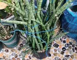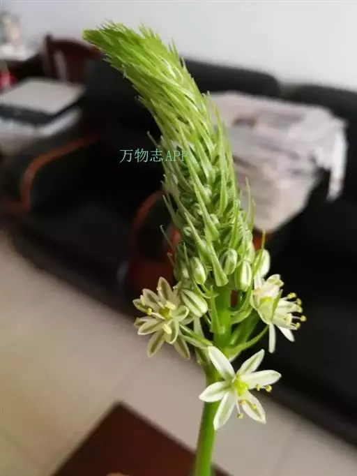 虎眼万年青(学名:Ornithogalum caudatum Jacq.),为百合科、虎眼万年青属多年生草本植物。该种每生长一枚叶片,鳞茎包皮上就会长出几个小子球,形似虎眼,故而得名虎眼万年青。又因其球状鳞茎似葫芦样,所以又俗称为葫芦兰。花期7-8月,室内栽培冬季也可开花。
