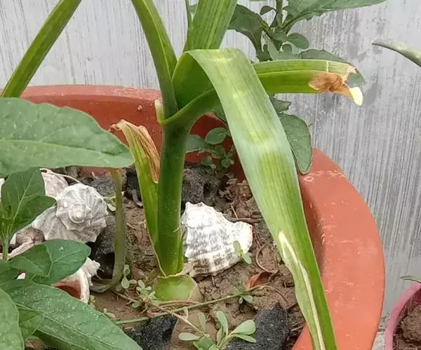 随着鳞茎的长大,叶片跟着伸长,为了使植株紧凑优美,必须改造叶片。改造时将叶片剪短约2/3,剪口力求多样化和艺术化,可根据需要将末端剪成椭圆形或楔形(羊角形等,但不可平剪)。这祥株形紧凑、奇特、大方。